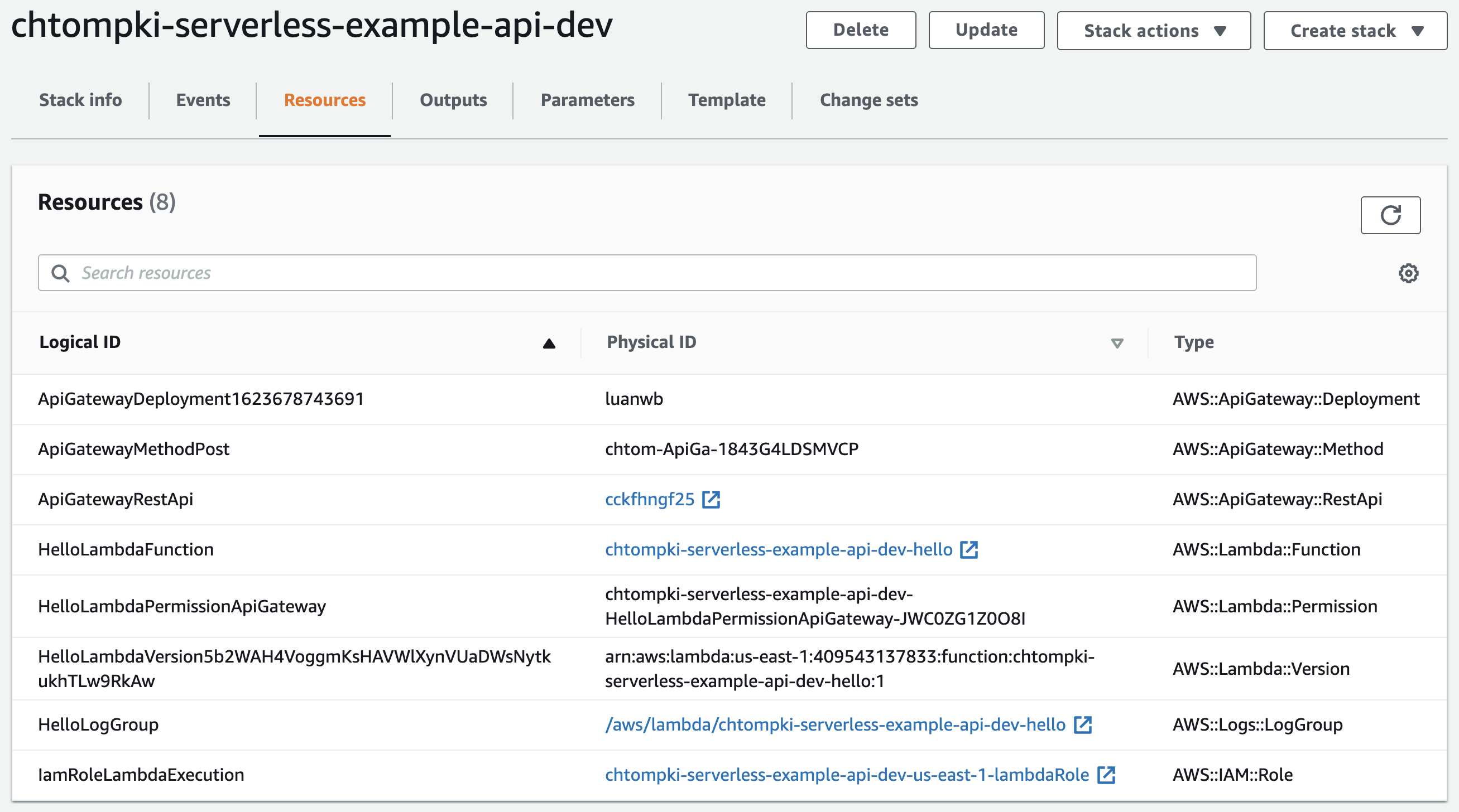 sls deployWe get a cloudformation deployment looking like this